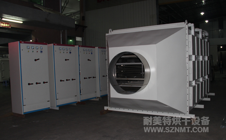 4、熱風(fēng)方式:冷空氣從進(jìn)風(fēng)百葉窗吸入,經(jīng)過加熱管變成熱風(fēng),送至出風(fēng)口;